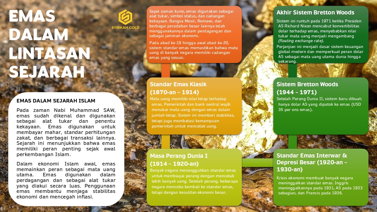 Syirkah Gold merupakan platform investasi perdagangan emas fisik syariah yang dirancang dengan skema akad kemitraan (syirkah) mudharabah, di mana investor bertindak sebagai pemilik modal (shahibul maal) dan Syirkah Gold sebagai pengelola (mudharib). Lebih dari sekadar instrumen investasi, Syirkah Gold membawa misi untuk memberikan Benefit123, yakni Empowerment, Capital Gain, Cash Flow, Hedging, Halal, dan Happiness bagi mitranya. Dengan pendekatan ini, Syirkah Gold tidak hanya menawarkan keuntungan finansial, tetapi juga kontribusi nyata dalam membangun ekonomi umat yang berkelanjutan dan berlandaskan nilai-nilai keadilan dan keberkahan.
