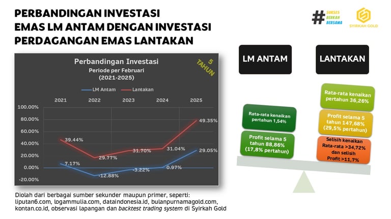 Dari sisi imbal hasil, program ini terbukti lebih unggul dibanding instrumen konvensional. Mitra personal berpeluang meraih imbal hasil hingga 5–6 kali lipat lebih tinggi dari deposito syariah, dan 2–3 kali lipat dibandingkan menyimpan logam mulia secara mandiri. Semua keuntungan tersebut diperoleh dengan tetap menjaga prinsip kehati-hatian dan transparansi, serta dalam koridor syariah yang menjauhkan dari riba, gharar, dan praktik tidak etis. Hal ini sangat penting bagi Anda yang ingin harta bertumbuh dengan keberkahan.