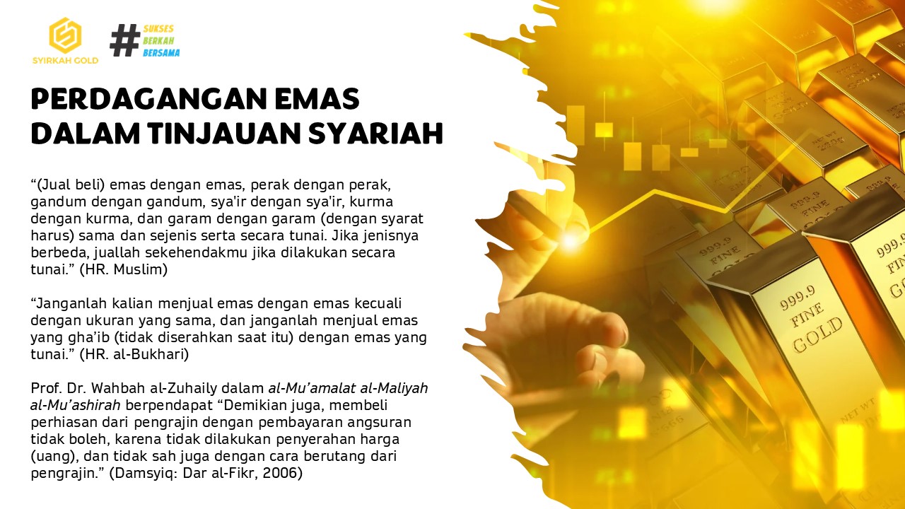 Syirkah Gold menawarkan kemitraan perdagangan emas fisik syariah dengan skema akad syirkah mudharabah.